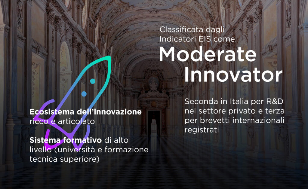 Con un Regional Innovation Index (RII) di 94,4 il Piemonte si colloca all’ottavo posto in Italia (contro una media nazionale di 90,3) ed è classificato come “moderate innovator” dalla Commissione Europea, nel ranking che misura le performance innovative delle regioni europee (127° posto in UE). Non è un dato negativo in assoluto, ma segnala che il potenziale rimane parzialmente inespresso.